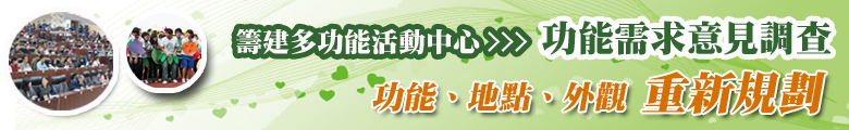 學校已依決議籌組專案規劃委員會並於10月8日召開第一次會議,經委員充分討論獲得共識,通過建物功能需求排序為:(1)學生活動中心;(2)展示廳(校史館、藝文中心);(3)校友聯誼場所;(4)中型活動場所;(5)室內運動場所等功能。惟相關需求及功能需再針對全校教職員生之意見做一蒐集,故請該委員會下的工作小組來執行相關之問卷調查,及舉辦一場公聽會,以廣泛蒐集、聽取師生意見,以作為委員會對此捐贈案之需求及興建地點之參考。另外林理事長也表示希望此捐贈案可以考量全校師生的需求來規劃此興建案,故設計此問卷調查表來蒐集大家的意見。